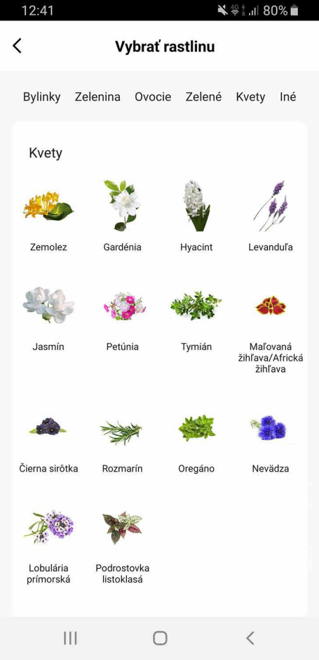 • Rastliny: Odporúčané pre izbové rastliny, zeleninu a bylinky (možnosť nastaviť typ rastliny v aplikácii)