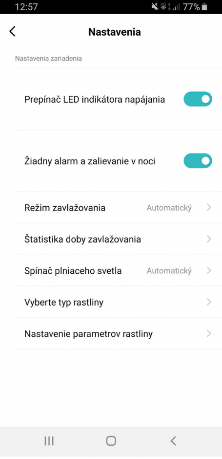 Diaľkové nastavenie parametrov rastu v mobilnej aplikácii