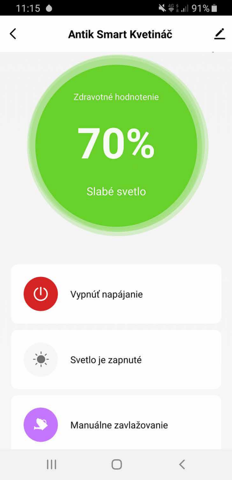 Plná kontrola nad všetkými funkciami inteligentného kvetináča.