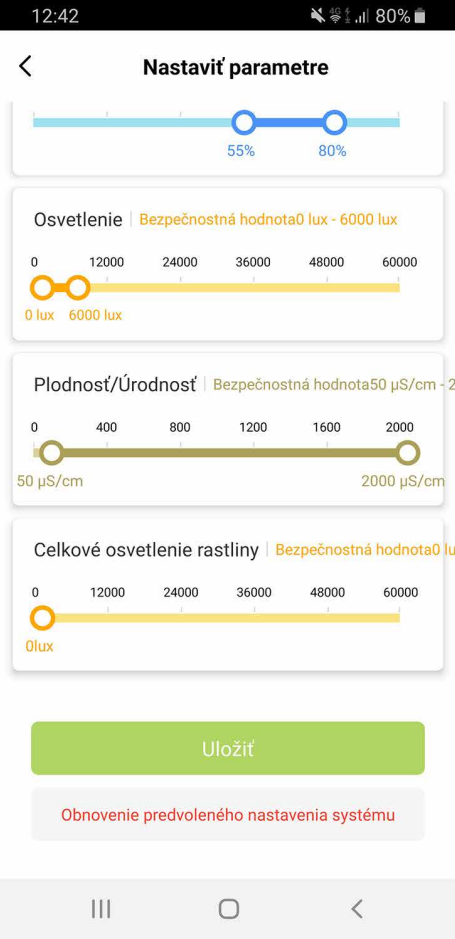 Hnojivo (Fertility)Nastaviteľná hodnotaUmožňuje nastaviť bezpečnú (optimálnu) úroveň hnojiva.