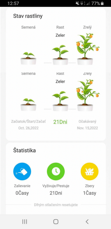 • Prezerať históriu rastu a vývoja rastlín až za posledné 3 mesiace