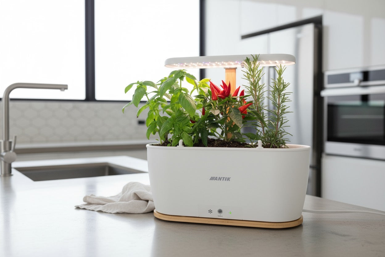 Čerstvé bylinky, kvety či zelenina priamo u vás doma – bez starostí o správne svetlo, zálievku či podmienky. ANTIK Plant Grower PG02 urobí všetku prácu za vás. Vďaka inteligentným senzorom a prepojeniu s aplikáciou ANTIK SmartHome® máte pestovanie pod úplnou kontrolou – automaticky aj manuálne. Zariadenie vytvára ideálne podmienky pre celoročné pestovanie, nezávisle od počasia či ročného obdobia.