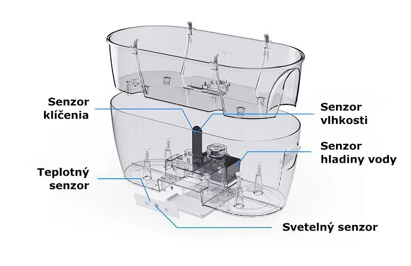 Kvetináč je vybavený 2-litrovou nádržou na vodu, ktorá minimalizuje potrebu častého dopĺňania. Inteligentný systém sleduje jej hladinu a v prípade potreby odošle upozornenie používateľovi. Prebytočná voda je odvádzaná do samostatnej zbernej nádoby, čím sa predchádza premokreniu substrátu a poškodeniu koreňov. Elegantný dizajn zároveň doplní moderný interiér a zmení starostlivosť o rastliny na jednoduchý a príjemný zážitok.