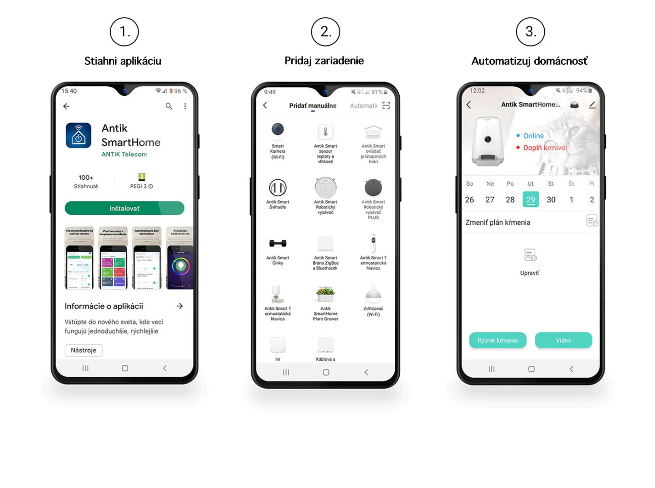 S našou intuitívnou a ľahko použiteľnou aplikáciou ANTIK SmartHome® bude kŕmenie vášho domáceho miláčika hračkou, aj keď sa práve nenachádzate doma. Zároveň môžete jednoducho ovládať osvetlenie, kúrenie, zabezpečenie a ďalšie zariadenia priamo z vášho smartfónu.