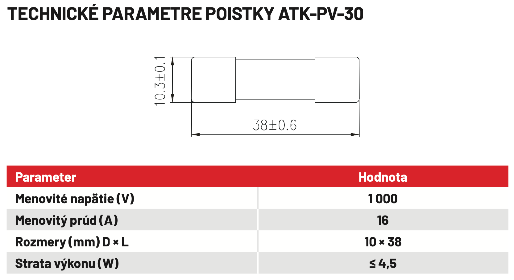 Technické parametre poistky ATK-PV-30
