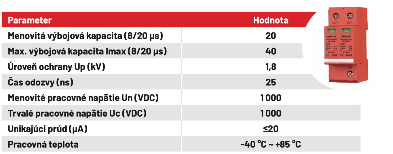 Technické parametre prepäťovej ochrany ATK-PV-1000