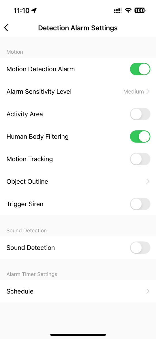 • Detection Alarm Settings: Nastavte detekciu pohybu s voľbou citlivosti.