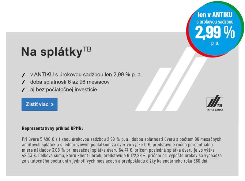s úrokovou sadzbou 2,99 % p.a. len v ANTIKU