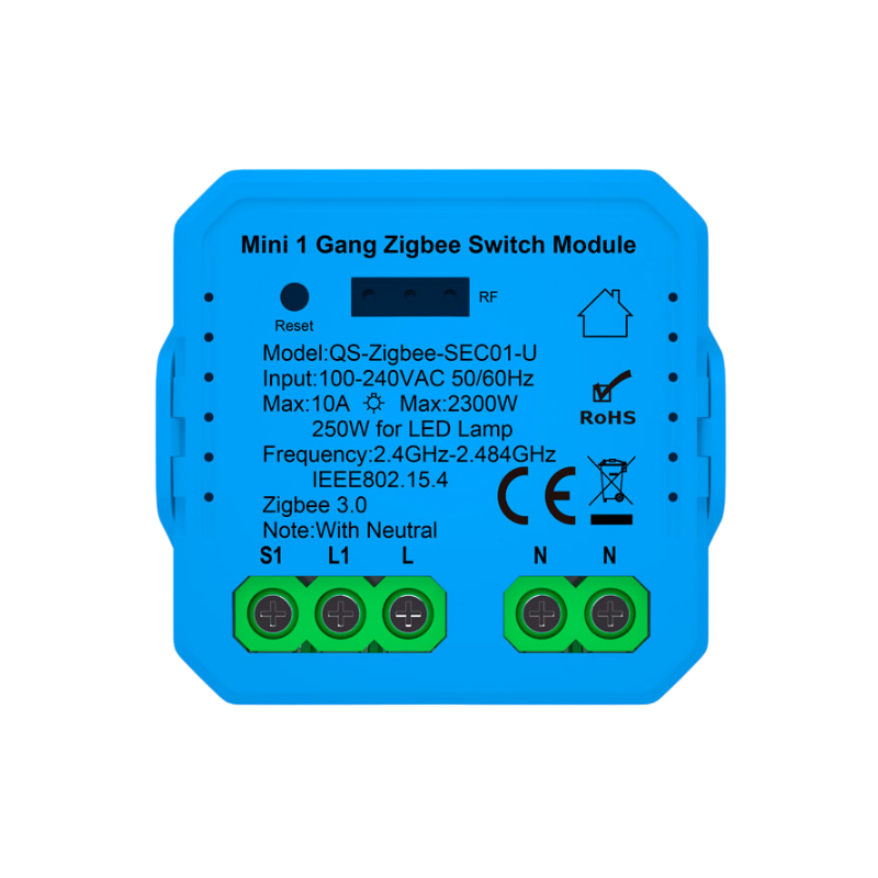 Inštaluje sa diskrétne za bežný nástenný vypínač a umožňuje jednoducho modernizovať osvetlenie v domácnostiach, kanceláriách či technických priestoroch. Modul komunikuje cez protokol Zigbee 3.0, ktorý zaručuje rýchlu odozvu, stabilné pripojenie a nízku spotrebu energie.