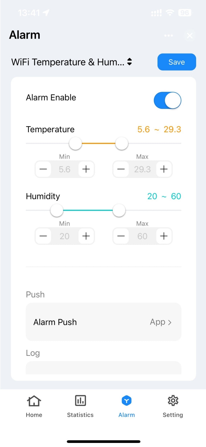 Aplikácia vás upozorní hneď, ako teplota alebo vlhkosť prekročia váš nastavený rozsah.