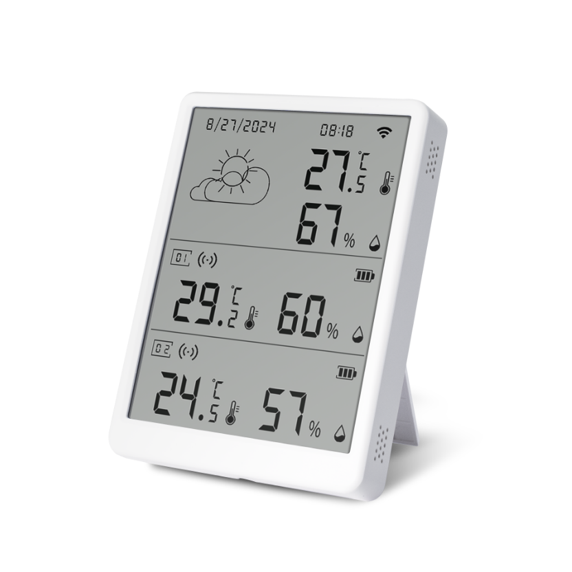 Hlavná jednotka má kompaktné rozmery 105 × 76 × 16 mm, takže ju ľahko umiestnite na stôl, poličku alebo stenu bez toho, aby zaberala zbytočný priestor. Je navrhnutá tak, aby pôsobila nenápadne, no zároveň poskytovala jasné a prehľadné informácie na displeji. Nízka hmotnosť 92 g umožňuje jej jednoduché prenášanie či premiestňovanie podľa potreby.