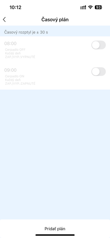 • Plánované zapnutie čerpadla – napríklad každý deň o 09:00.