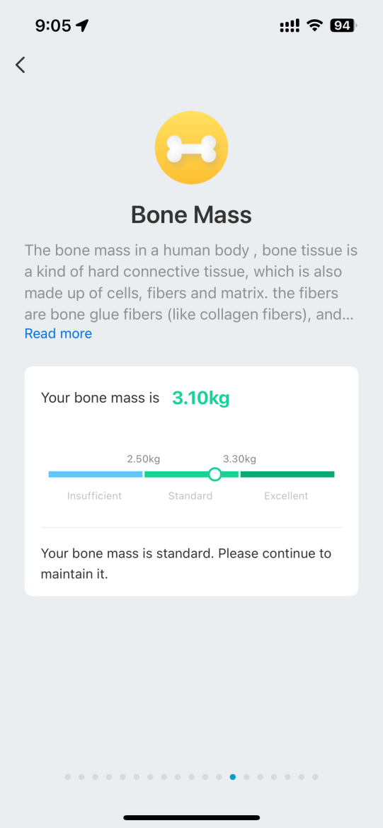 Táto váha nielenže meria základné hodnoty ako hmotnosť a BMI, ale tiež poskytuje podrobné údaje o hmotnosti bez tuku, obsahu telesnej vody, hmotnosti kostí a ďalších kľúčových metrikách. Tieto informácie vám pomáhajú hlbšie porozumieť vašej telesnej kondícii a jej špecifickým potrebám.