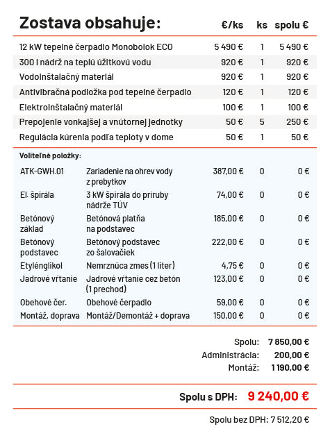 Kompletné riešenie pre náročné domácnosti s tepelným čerpadlom 12 kW typu monoblok, 200 l nádržou na TÚV a profesionálnou montážou.
