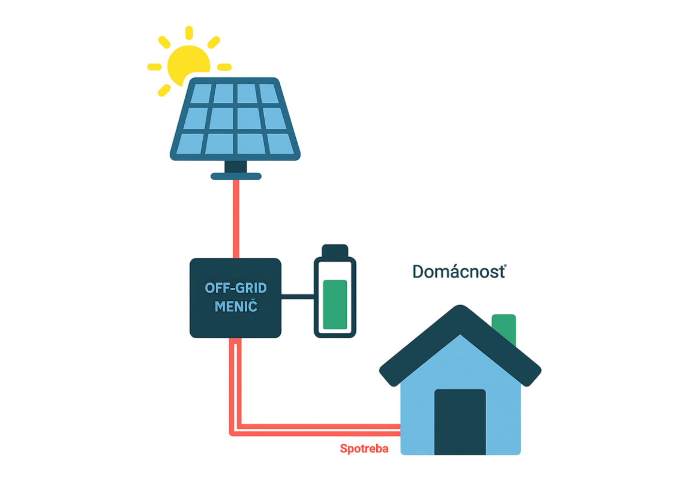 Dôvod: Systém nevyžaduje veľké výkony, spravidla do 5kW a preto stačí menšia kapacita batérie a jednofázový výstup, vďaka čomu je počiatočná investícia veľmi prijateľná. Výhodou off-grid riešenia je možnosť fungovať na elektrickú energiu aj na miestach kde nie je dostupná distribučná sieť.