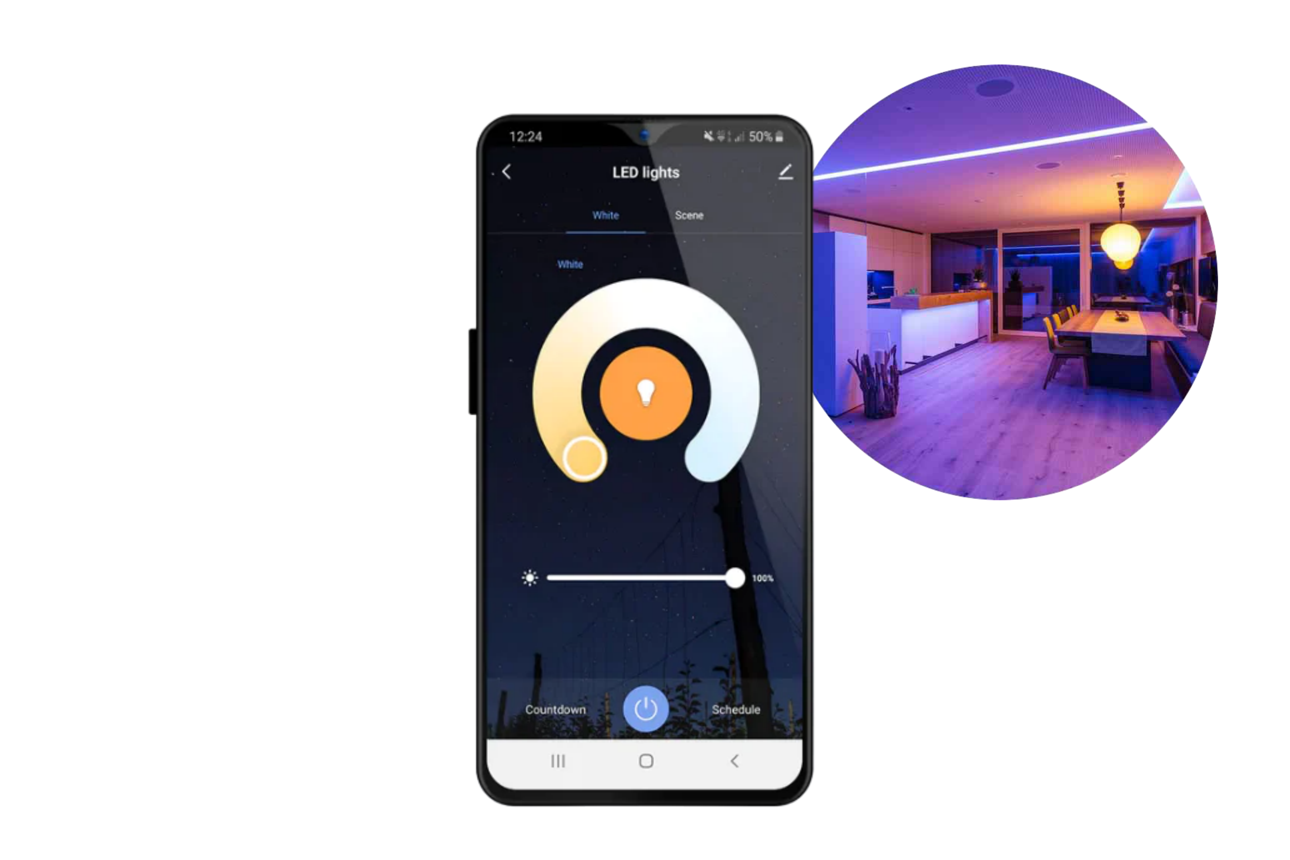 4. Konektivita, a pripojenie k mobilnej aplikácií, ktorá umožňuje ovládanie svetiel na diaľku, plánovanie a integráciu s ďalšími smart zariadeniami.