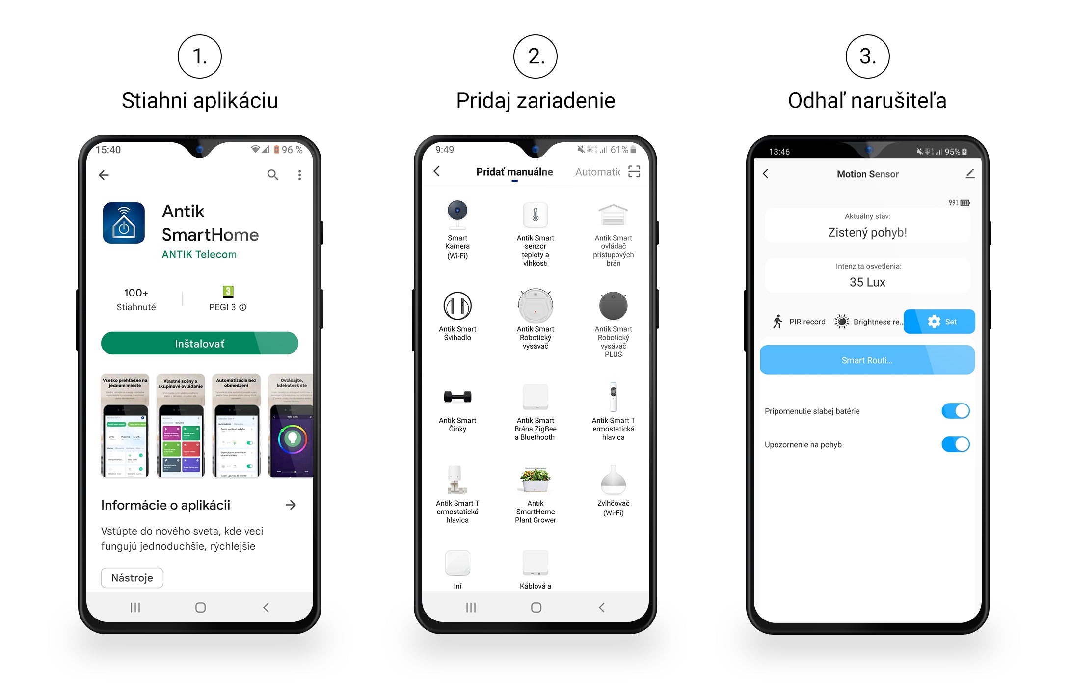 Antik Smart pohybový senzor a senzor intenzity svetla ATK-PBS01 monitoruje a detekuje pohyb vo vašej domácnosti, chate alebo firme. V prípade neoprávneného vniknutia, si pomocou smart funkcií dokážete nastaviť poslanie notifikácie na mobil, alebo spustenie sirény. Pre zvýšenie komfortu vášho bývania si môžete nastaviť automatické zapínanie svetla na chodbe, alebo schodisku v nočných hodinách, alebo poslať notifikáciu, keď sa vaše deti vrátia zo školy. Pomocou hodnôt intenzity osvetlenia si dokážete komfortne nastaviť zapínanie tlmeného svetla, v prípade vašeho presunu domácnosťou vo večerných hodinách.