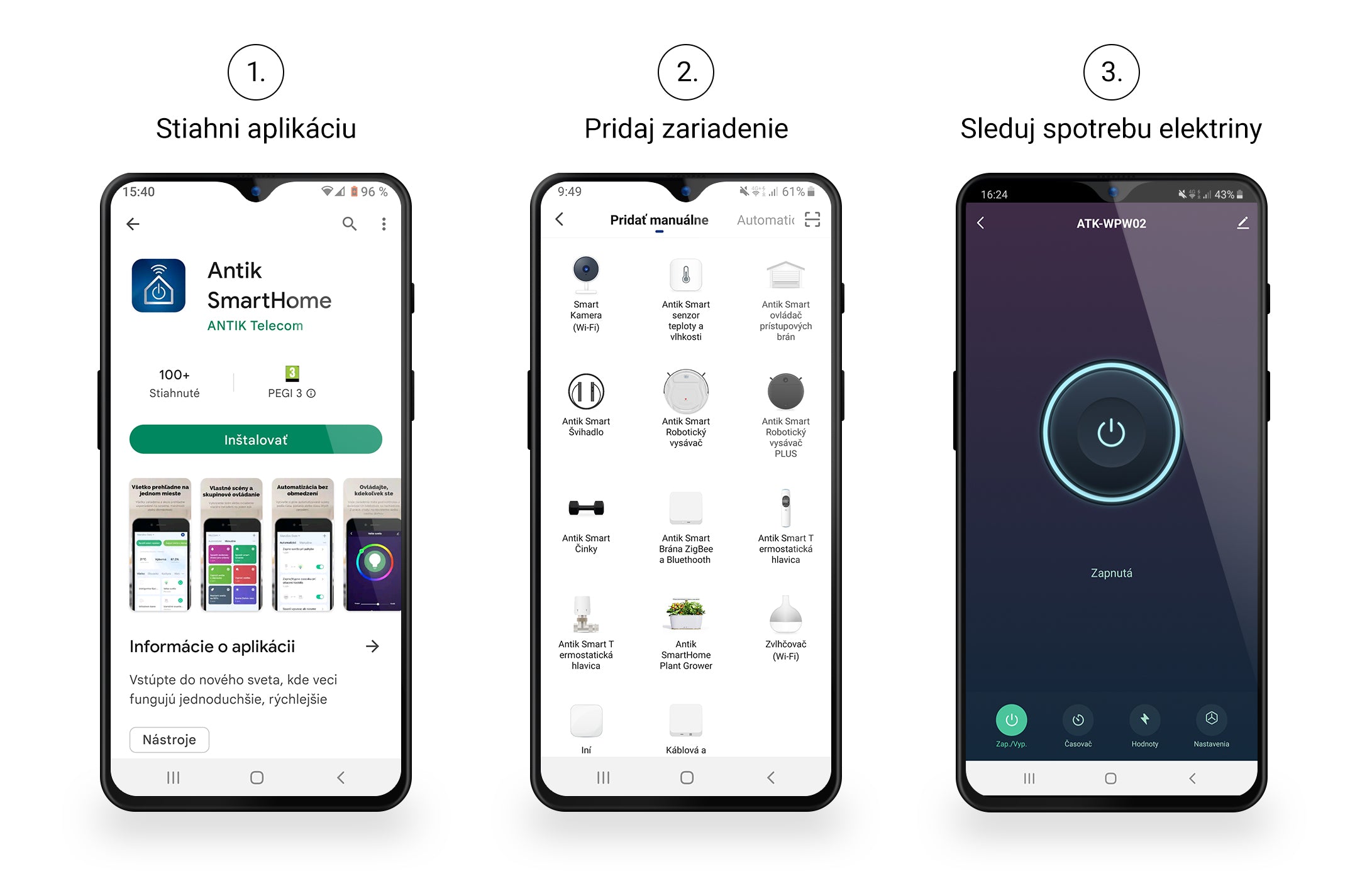 Skúste si predstaviť, že z bežných spotrebičov sa jedným kliknutím stanú smart spotrebiče. Pomocou ANTIK smart Wi-Fi zásuvky ATK-WPW02 môžete mať pod kontrolou vypnutie a zapnutie spotrebičov jedným kliknutím, rýchlo a jednoducho. Okrem funkcie ovládania spotrebičov v domácnosti vám zabezpečí prehľad spotreby energie jednotlivých spotrebičov. Nameraná spotreba energie sa tak stáva prehľadnou a viete si ju sledovať v aplikácií Antik SmartHome, v ktorej si navyše môžete nastaviť jednotlivé plány zapnutia/vypnutia, vo vopred stanovených časoch. Obrovskou výhodou je možnosť pripojenia cez WiFi.