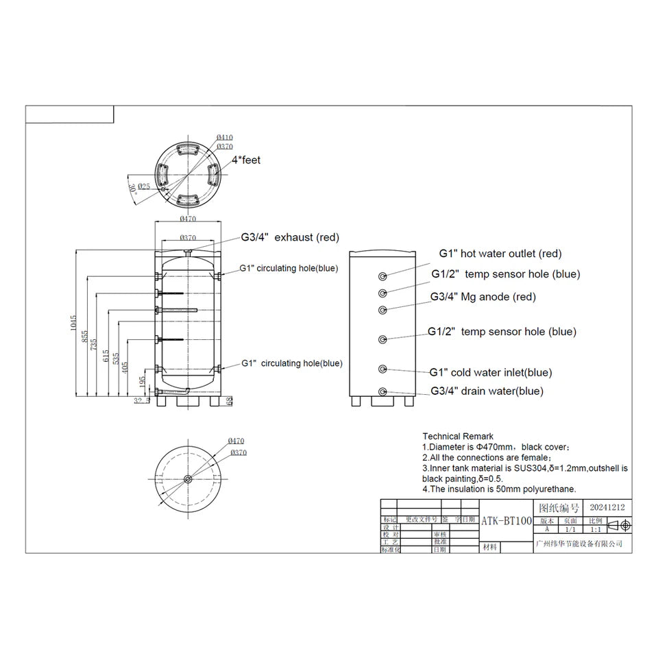 100l vyrovnávacia nádrž - kvalitná nerezová nádrž určená pre stabilizáciu chodu tepelného čerpadla. Umožňuje nastaviť inú obehovú rýchlosť vody v kúrení oproti tomu akú si nastavuje tepelné čerpadlo a zároveň zvyšuje objem vody v kúrení čo znižuje počet štartov tepelného čerpadla. Nádrž neobsahuje výmenník.