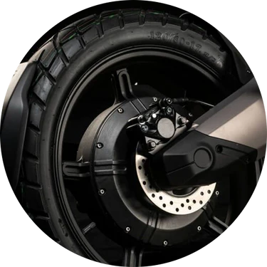 Široké, terénne pneumatiky umiestnené v 17-palcových ráfikoch poskytujú vynikajúcu priľnavost a umožňujú pohodlnú jazdu na ceste aj v teréne. Blatník je pripevnený ku výkyvnej zadnej vidlici a pokrýva kritickú časť pneumatiky, aby sa zabránilo znečisteniu jazdca v akomkoľvek počasí.